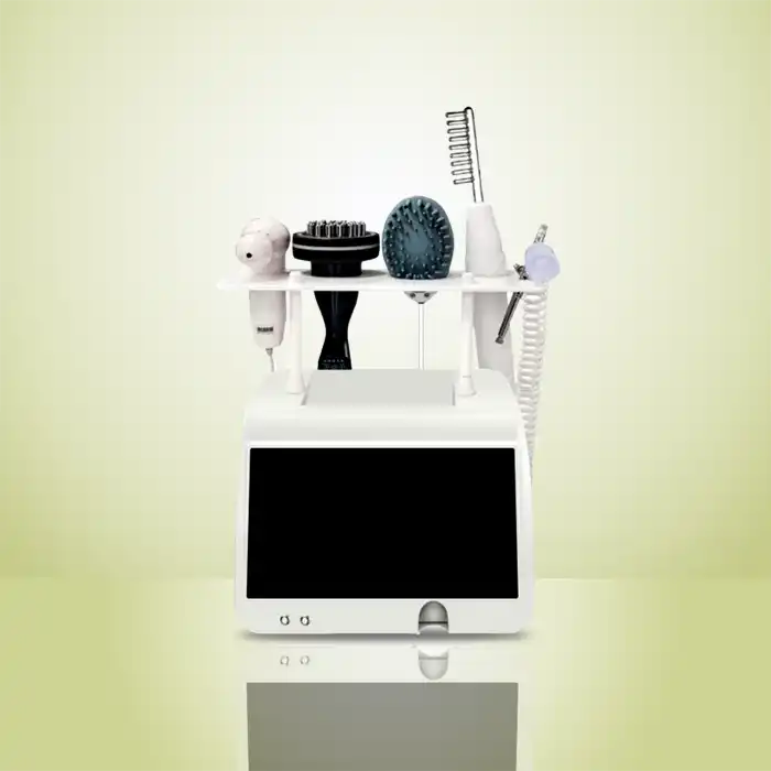 آنالیزور پوست سر: با استفاده از لنزهای میکروسکوپی (۵۰x و ۲۰۰x)، مشکلاتی مانند خشکی فولیکولها، منافذ مسدود شده، التهاب، شوره، و چربی بیش از حد را تشخیص میدهد